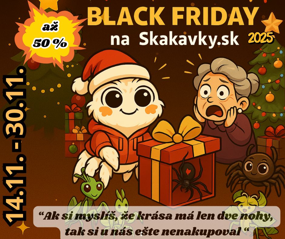 BLACK FRIDAY na Skakavky.sk je späť a potrvá až 2 týždne ! Od 14.11. 18:00 do 30.11. 23:59 ťa čakajú zľavy až do výšky neuveriteľných -50%! Z každej Black Friday položky je len limitované množstvo, takže až do konca akcie budeme na dennej báze tovar obmieňať ! Kto zaváha, tomu sa neujde ! Pridali sme nové misky a tie staršie sme zdokonalili a systematicky zaradili do prehladnejšej formy. Znižili sme ceny terárií, dekorácií a doplnkov vďaka novým lacnejším kontraktom na materiál. Taktiež rušíme niektoré výrobky a nahrádzame ich dokonalejšou novou verziou. Ďalšie novinky na vás už čakajú a postupne ich začneme na stránku pridávať. Máte sa na čo tešiť. Taktiež sa už na niektorých fotografiách objavuje náš maskot "SKAKINO", ktorý bude zohrávať doležitú úlohu v našom e-shope a taktiež s nim pripravujeme prekvapenie pre našich detských návštevníkov. Onedlho sa možete tešiť na náš "zábavný kútik so Skakinom" :-) Presunieme sa trochu k organizačným veciam. Na základe skúseností z minulých rokov pridávame od tejto zimy vyhrievacie vrecko automaticky k zásielke už v cene poštovného. Nemusíte si ho kupovať zvlášť, je to súčasť štandardu bezpečnej dopravy. V prípade extrémnej zimy si vyhradzujeme právo pozastaviť zasielanie, Našim cieľom je, aby ste mali najvyšší štandard služieb za férovú cenu a aby vaše nové zvieratká a rastlinky dorazili bezpečne, rýchlo a spokojne.