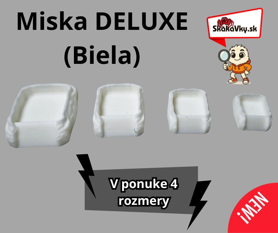 DELUXE biela miska na vodu s prístupovou plošinkou v imitácii kameňa prináša do terária estetiku aj praktickosť. Je vyrobená z odolného, hygienického plastu a dostupná v 4 veľkostiach, takže je ideálna pre skákavky, modlivky, tarantuly aj plazy. Vďaka realistickému prevedeniu skvele ladí s prírodnými dekoráciami a ľahko sa čistí.
