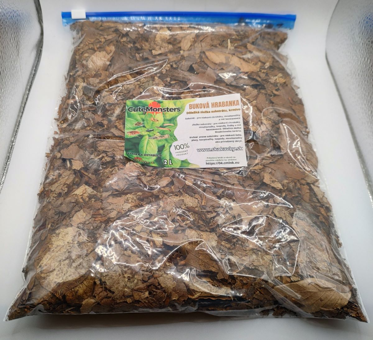 Hrabanku môžeme použiť ako substrát pre chrobáky, mnohonožky a ďalšie bezstavovce alebo tiež ako súčasť do komplexných substrátov pre chrobáky, mnohonožky, Isopody, šváby a ďalšie. Hrabanka je tiež ideálnou prímesou do substrátov pre bioaktívne terária. Hrabanku môžeme použiť aj ako vrchnú vrstvu substrátu pre ďalšie druhy zvierat ako sú žaby, korytnačky, jaštery, kde potom poskytuje mnoho prirodzených úkrytov pre chované zvieratá.Hrabanka je zmes opadaný dubových listov, plodov a konárov ležiacich na zemi už dlhšie časové obdobie /minimálne 1 sezónu/a nastal ich čiastočný rozklad. Obsah balenia: 2 Litre