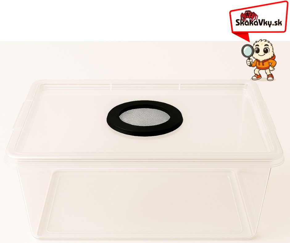 - Vrchné vetranie: Sieťovina s jemnými okami 0,7 mm zabezpečuje dostatočnú ventiláciu a zároveň chráni pred únikom chovancov.