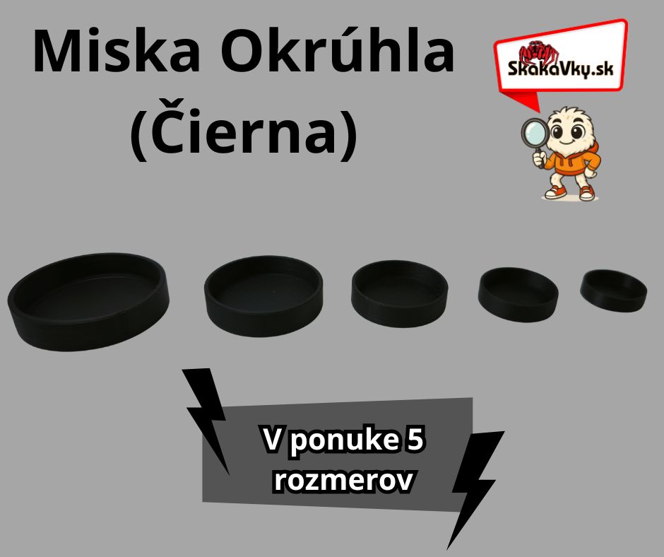 Univerzálne čierne misky na vodu pre teráriové zvieratá v 5. veľkostiach. Hygienické, ľahko umývateľné a vhodné aj pre malé druhy ako skákavky či modlivky.