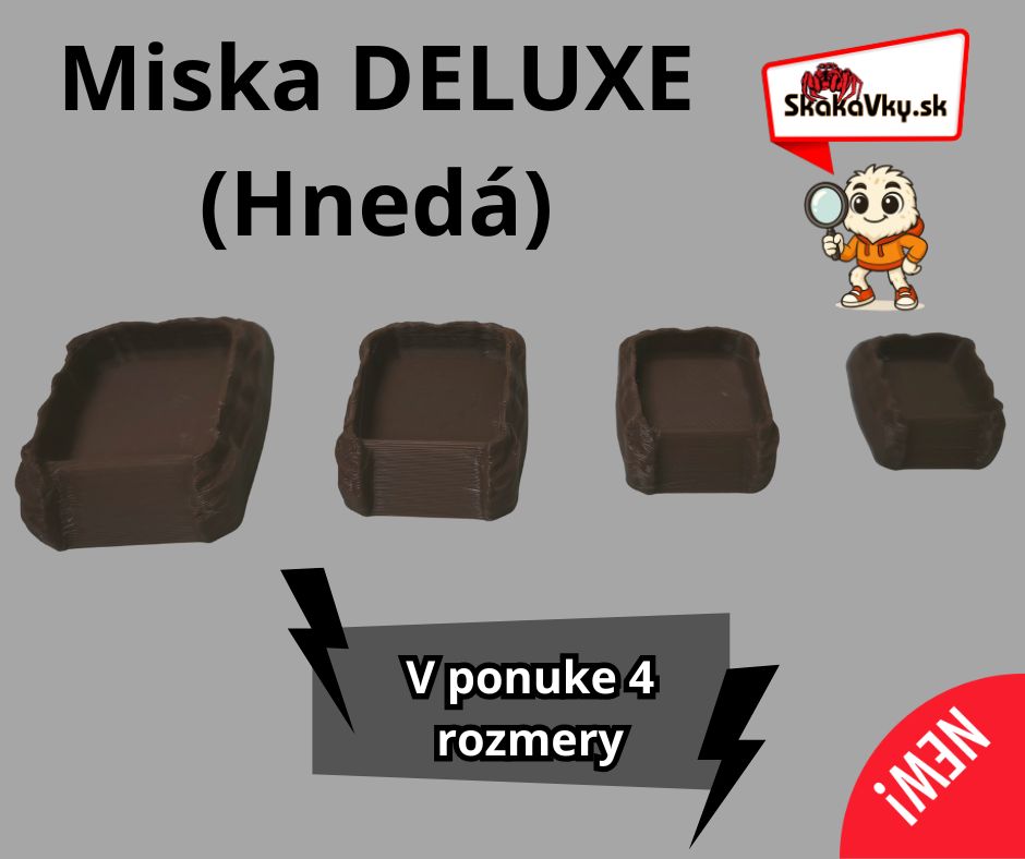DELUXE hnedá miska na vodu s prístupovou plošinkou v imitácii kameňa prináša do terária estetiku aj praktickosť. Je vyrobená z odolného, hygienického plastu a dostupná v 4 veľkostiach, takže je ideálna pre skákavky, modlivky, tarantuly aj plazy. Vďaka realistickému prevedeniu skvele ladí s prírodnými dekoráciami a ľahko sa čistí.