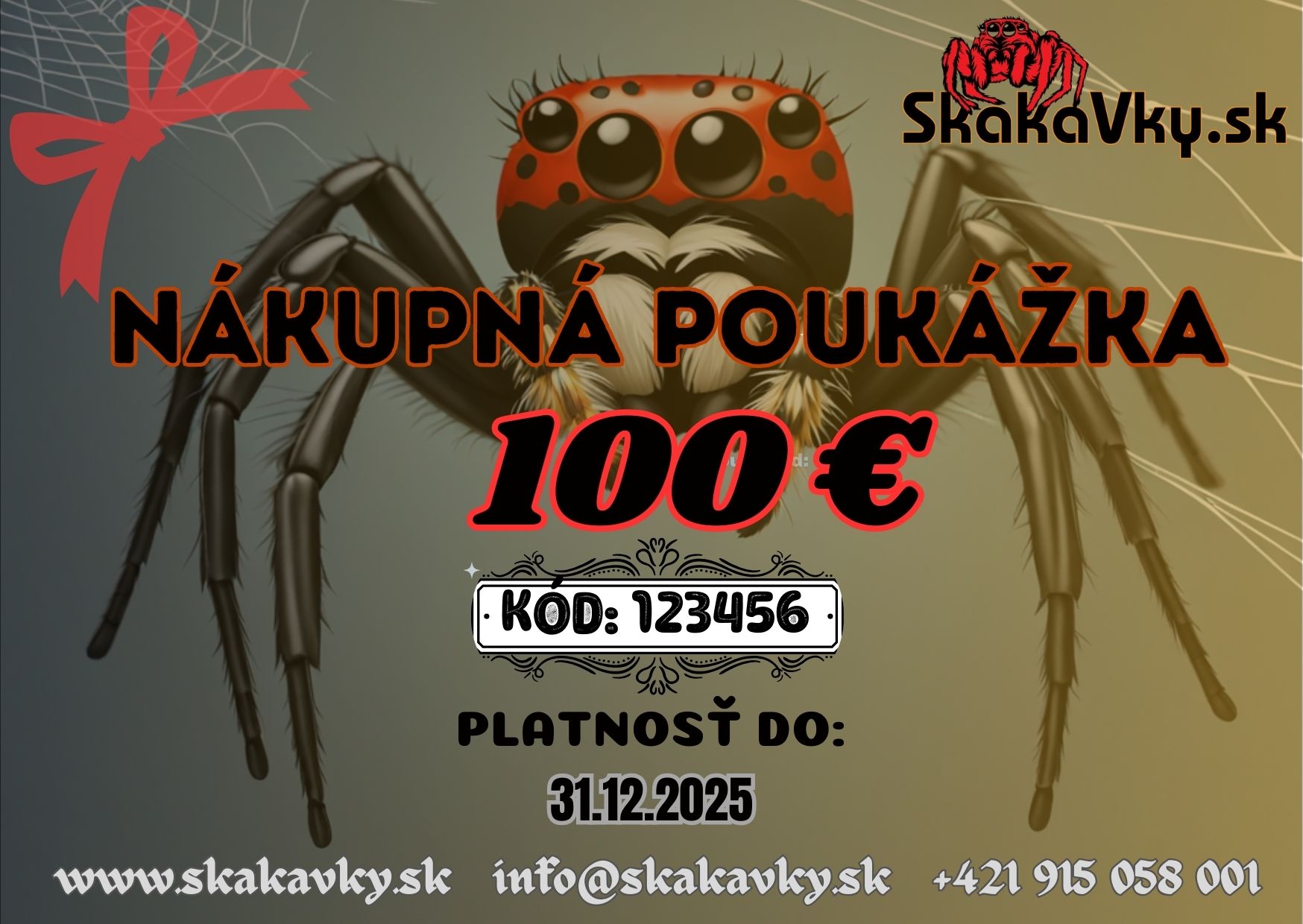 - Hodnota uvedená na prednej strane poukazu (po zaplatení dostanete e-mailom*) sa odpočíta od ceny nákupu v internetovom obchode na www.skakavky.sk, doručíme Vám ju najneskôr do 48 hodín po úhrade ceny.
