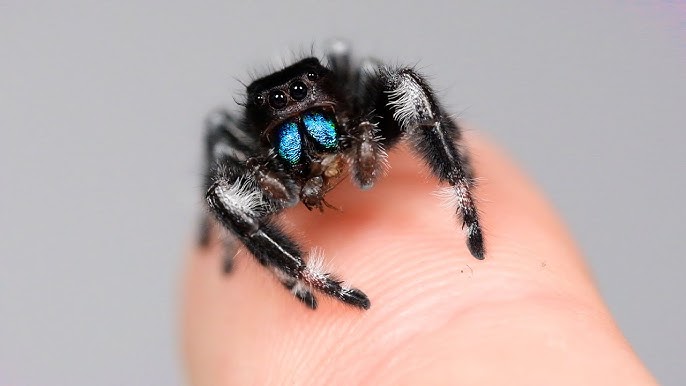 Phidippus regius je druh, ktorý sa rýchlo adaptuje na prostredie – stačí mu svetlé, dobre vetrané terárium a stabilná teplota. Nezabudni, že samice bývajú pokojnejšie, samce sú zvedavé a často sa nechajú pozorovať priamo na skle.