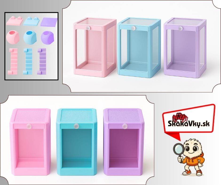 Terárium TRANSFORM – MINI MODERN je univerzálne mini terárium určené pre malé skákavky, modlivky, strašilky, listovky a okrasný hmyz. Obsahuje kvalitné krížové vetranie, dvojité otváranie (vrchné a predné) a dve výmenné vrchné dvierka – priehľadné plexisklo alebo jemnú mikrosieťovinu vhodnú pre zvieratá, ktoré sa zvliekajú zavesením. Vďaka modulárnym doplnkom (skrýša, schody, plošinka) a možnosti výberu modernej farby /ružová, modrá, fialová/ je ideálnym dizajnovým doplnkom pre začiatočníkov aj pokročilých chovateľov.