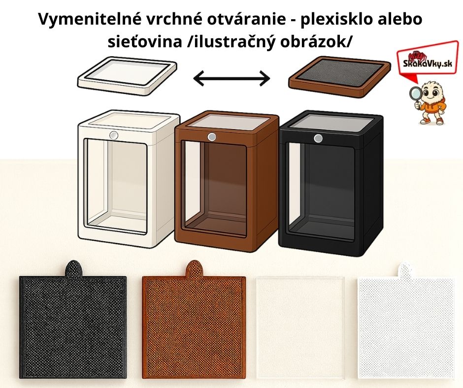 Aby ste nemuseli meniť celé terárium pri kúpe iného druhu zvieraťa, sú súčasťou balenia dva typy vrchných dvierok:
